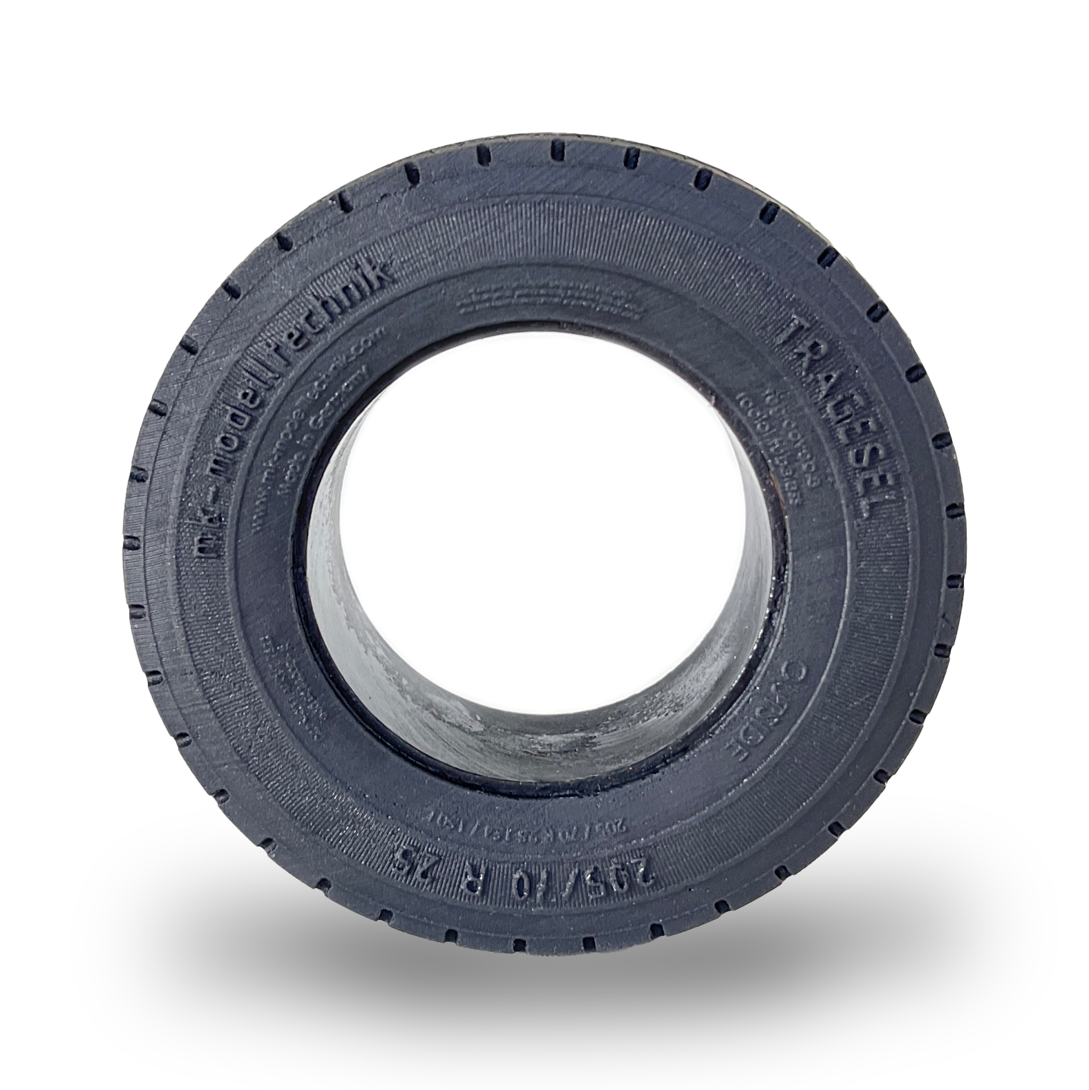 mk-modelltechnik Reifen sind aus Vollmaterial im Vakuum gegossen und besitzen eine hohe Traglast. Die Härte Shore Mischung ist auf die Zuladung ausgelegt.