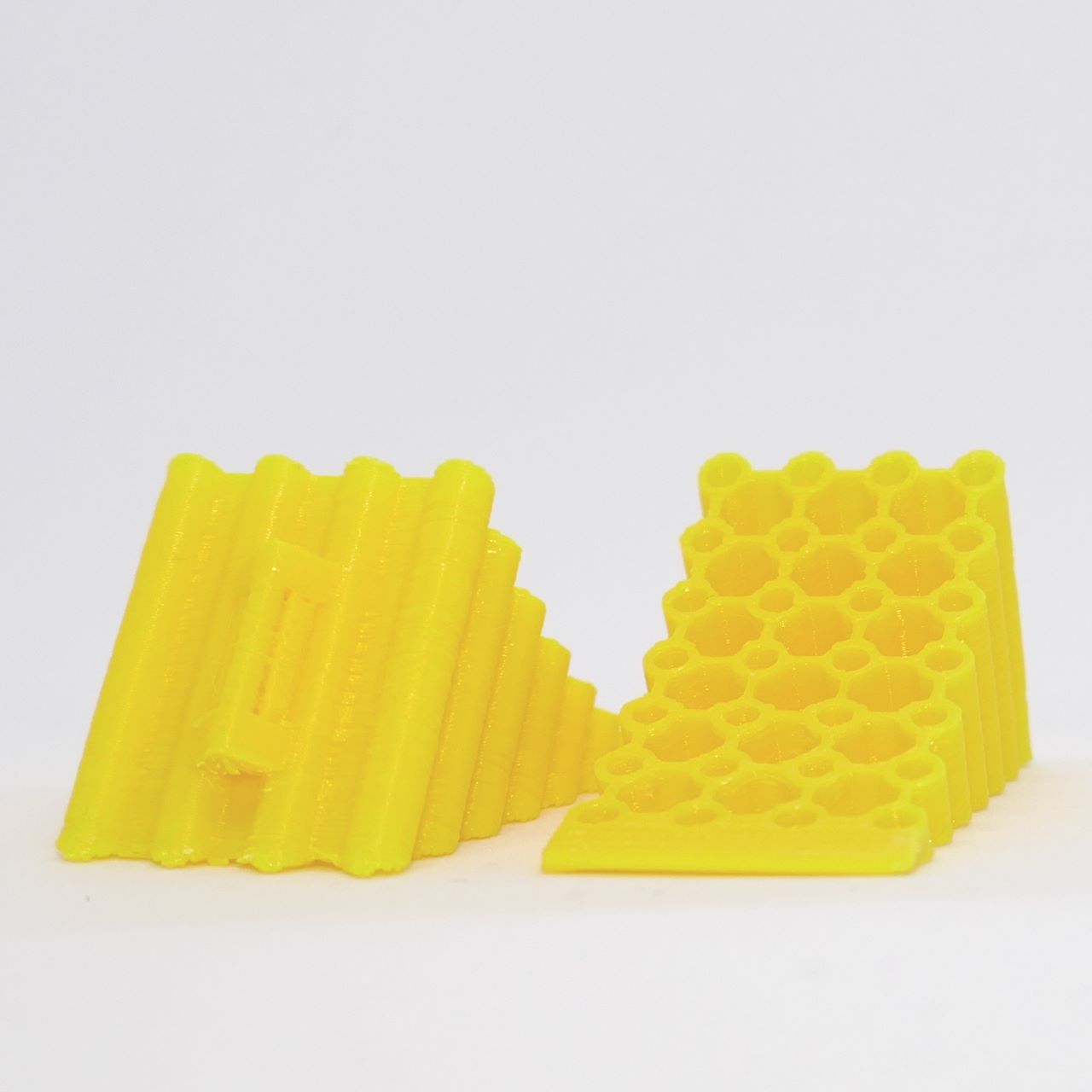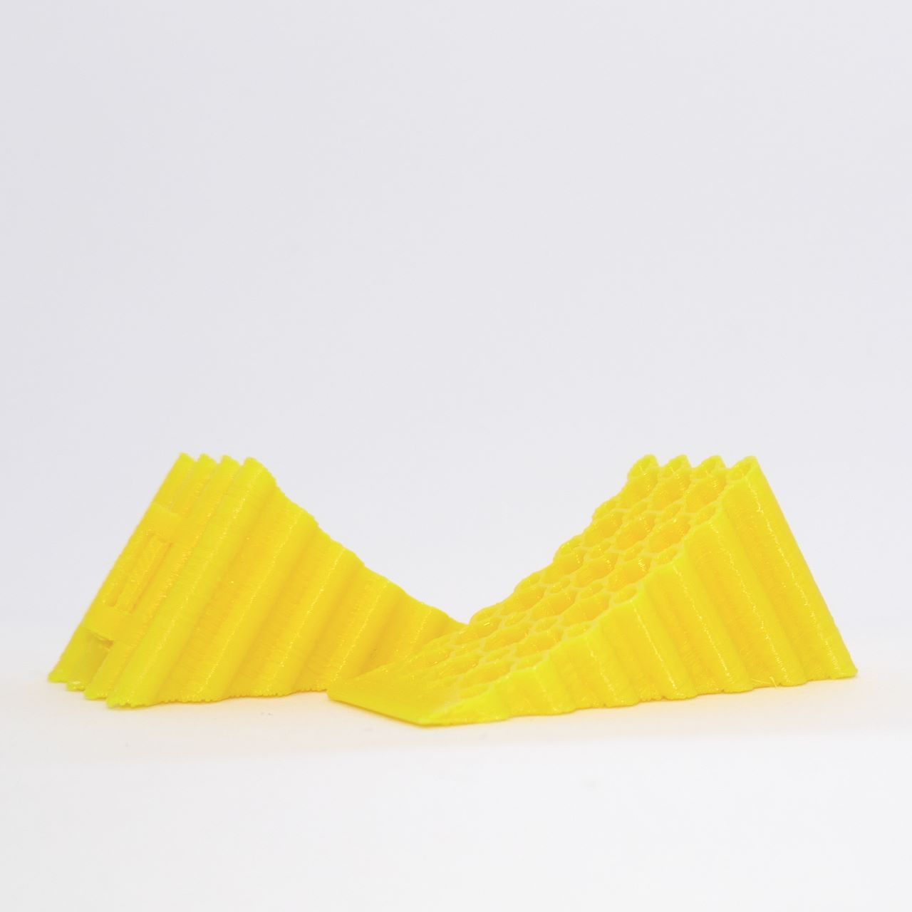 Vorbildgetreuer gelber Bremskeil in Leichtbauweise M 1:8 - Ansicht von vorn und hinten von mk-modelltechnik