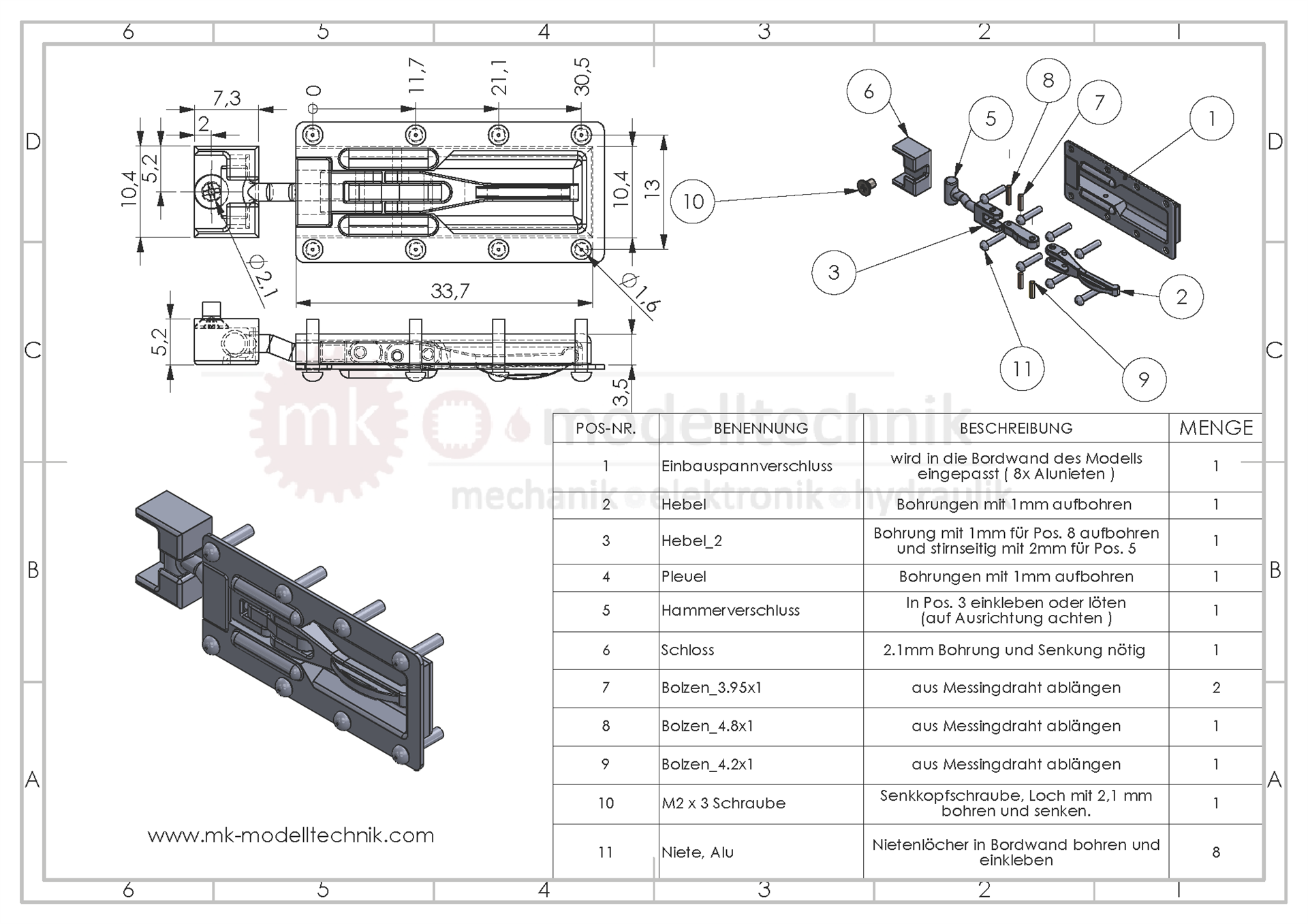 Der Teilesatz wird unlackiert zur Selbstmontage geliefert. Angüsse müssen noch entfernt und verputzt werden. Eine Montageanleitung liegt bei, ebenfalls das Ausschnittmaß für die Bordwand.